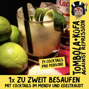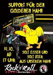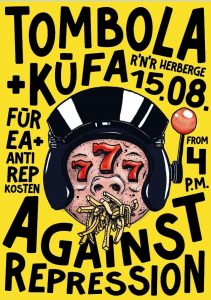 Alle Einnahmen abzüglich der Unkosten gehen an den Mollies Wagenplatz und die Obdachlosenbesetzung in der Habersaathstraße.